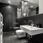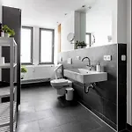 Visitors of Global Living - Design Apartment I Rathausplatz I Kitchen I Augsburg will enjoy the comfort of a bathroom with a hair dryer and bath sheets. Moreover, there is a walk-in shower and a separate toilet as well.